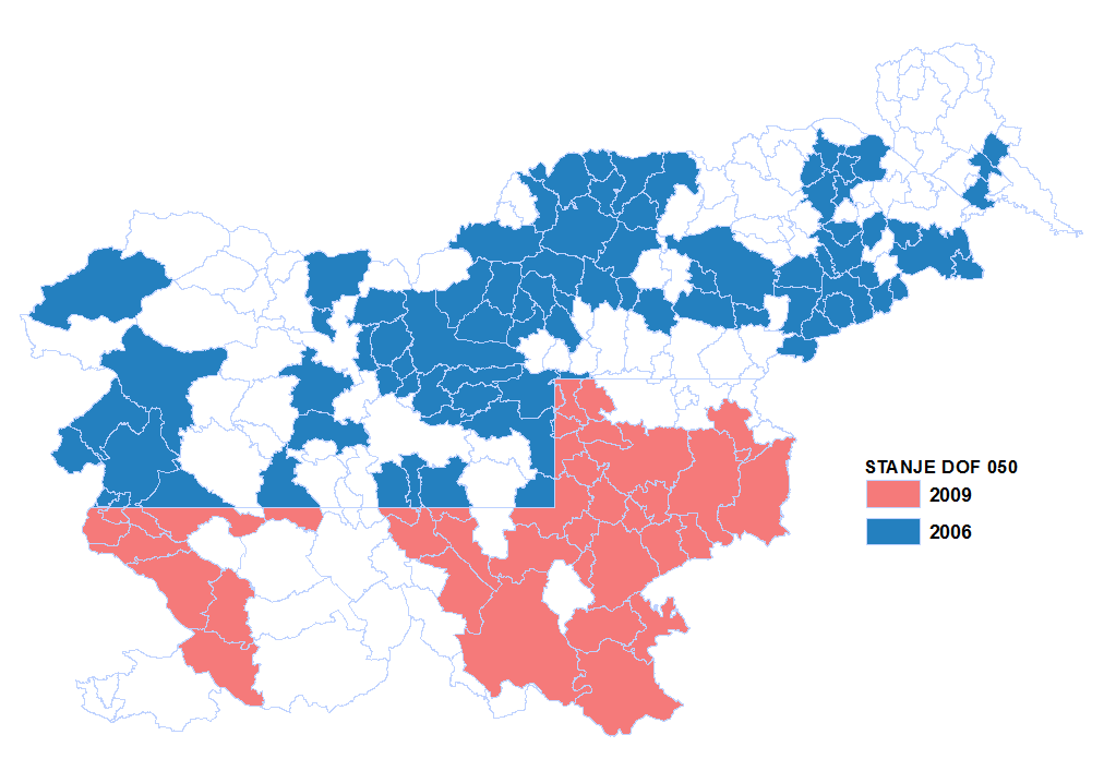 Karta levo prikazuje trenutno stanje s prikazanim območjem novih in starih listov DOF050