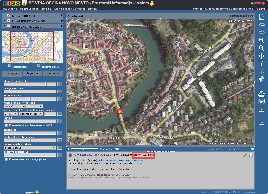 Novost je tudi izpis približne višine površja »dz«*, ki predstavlja absolutno razliko med višino tal in višino površja, na osnovi podatkov LiDAR.