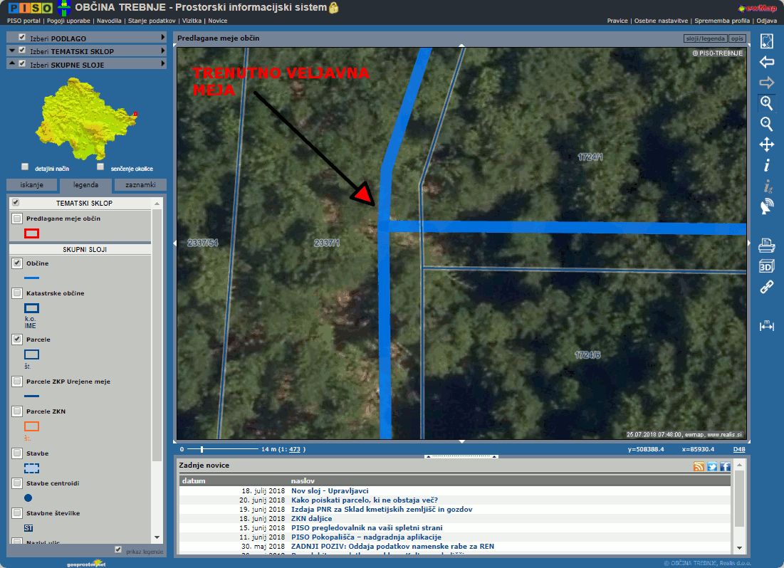 Nov sloj - Predlagane meje občin V PISO je na voljo nov tematski sklop Predlagane meje občin (samo v internem delu). Predlagane meje predstavljajo osnovo za usklajevanje meja med sosednjimi občinami. Cilj: usklajenost meja občin z mejami parcel v ZK. Vir: GURS, julij 2018 25. julij 2018 10:00 Kategorije: Novosti Prejšnja objava << >> Naslednja objava