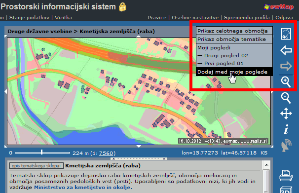 Gumb za prikaz celotnega območja občine odslej ponuja dodatno možnost prikazovanja in shranjevanja osebnih pogledov - Moji pogledi.