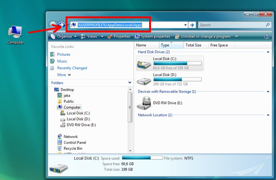 2. Pobrišite vsebino mape %USERPROFILE%\AppData\Local\Apps
