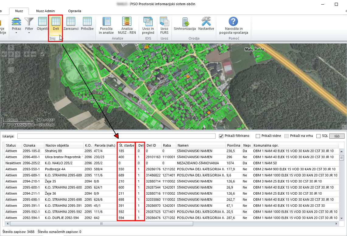 Poleg obstoječih tabel Objekti, Zavezanci in Pritožbe je sedaj v aplikaciji PISO NUSZ na voljo še tabela Deli, ki vsebuje seznam vseh stavbnih delov, ki so predmet NUSZ.