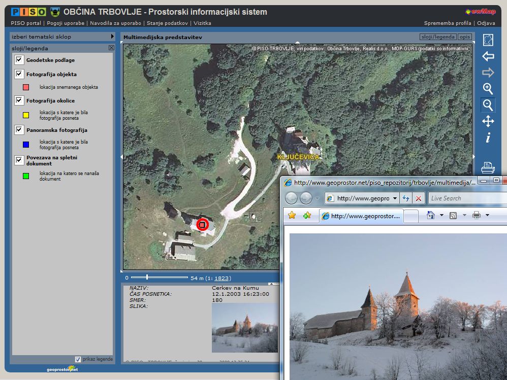 Za še popolnejšo sliko stanja v naravi je v sistemu PISO omogočeno povezovanje prostorskih podatkov na multimedijsko gradivo, v kolikor to obstaja. Neoviran dostop do fotografskega gradiva ali videoposnetkov je zagotovljen z varnim shranjevanjem podatkov v računalniškem centru.