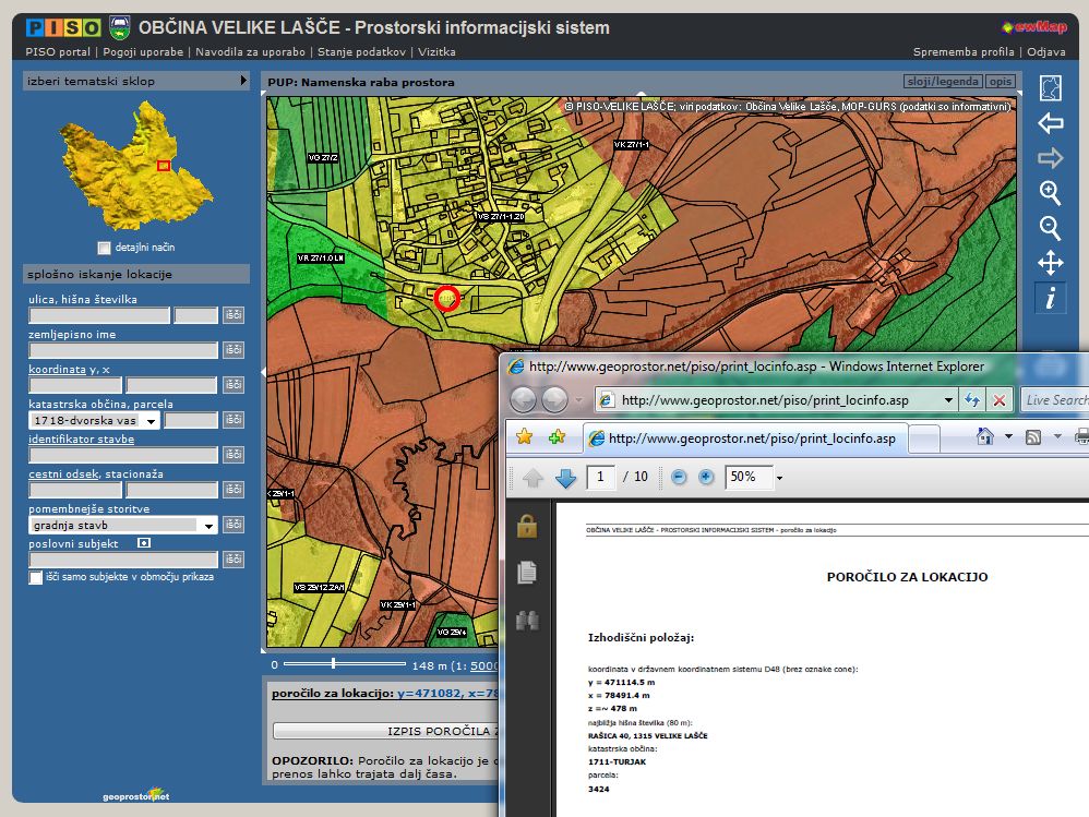 - priprava poročil in kartografskih vsebin za izpis na tiskalnik;