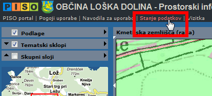 Z izbiro menija "Stanje podatkov" se vam v tekstovnem delu izpišejo datumi posamezne distribucije podatkov. Odslej so zbrani vsi podatki državnih producentov, izpisani so datumi prevzema oz. vključitve v sistem, informacija o pogostosti ažuriranja in povezava na domače strani producenta.