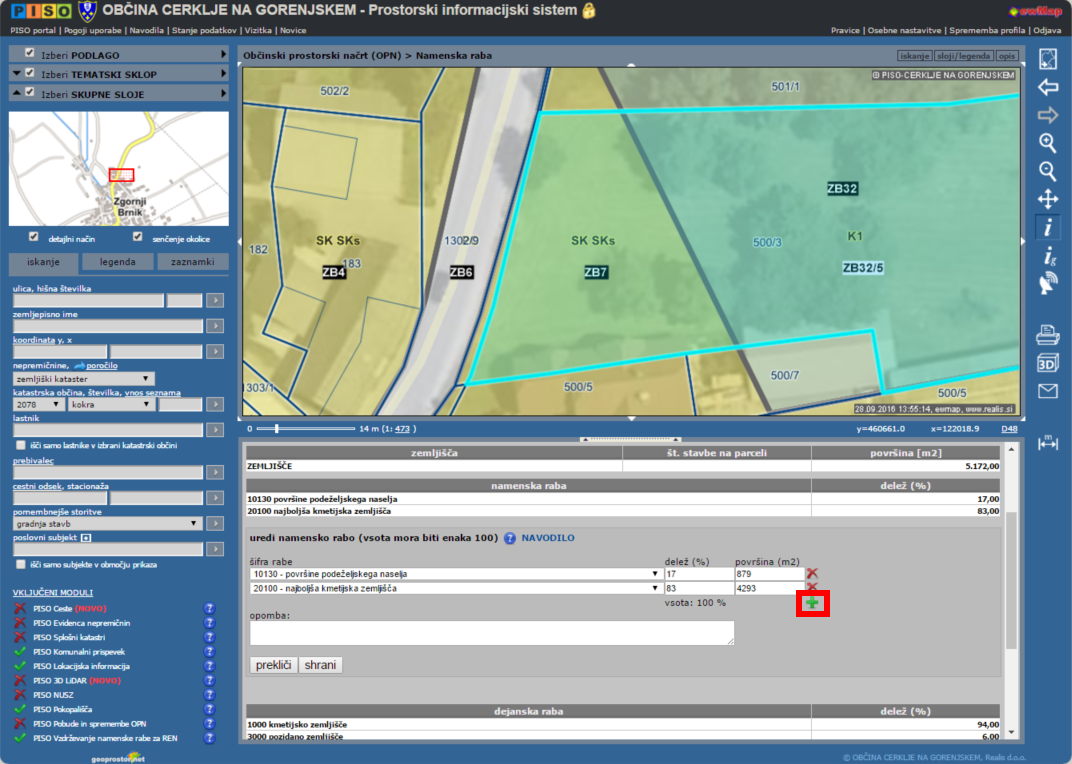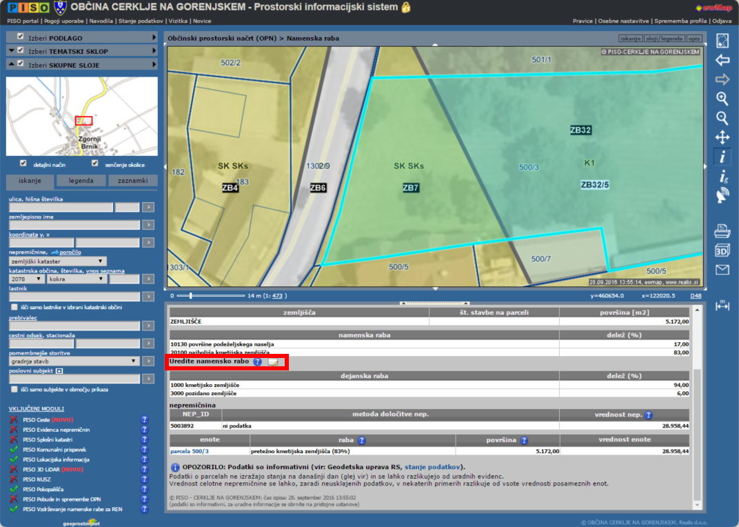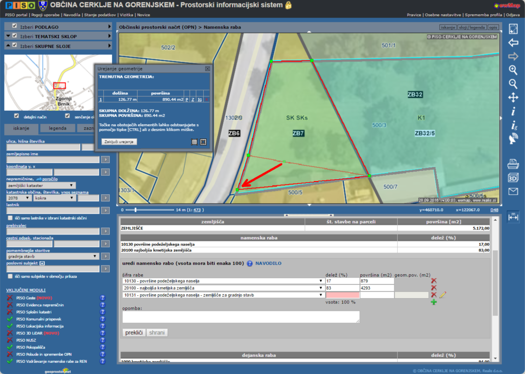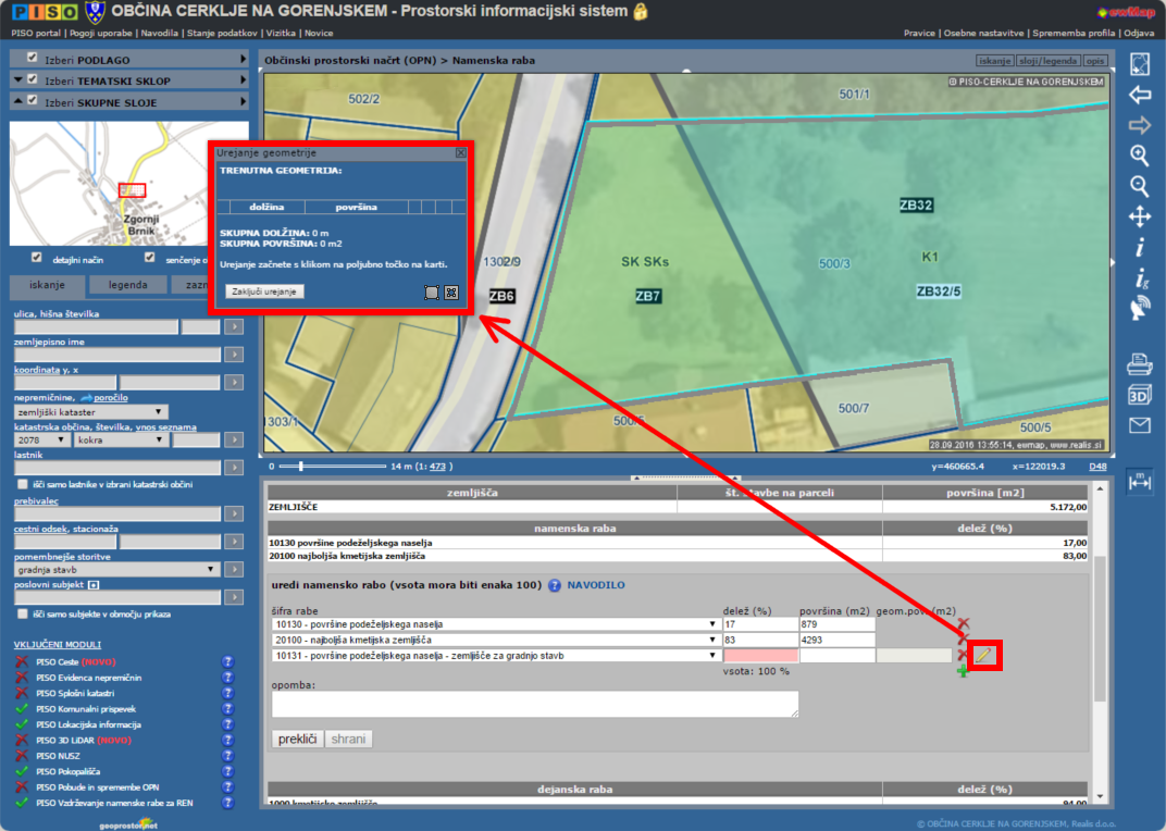 - Orodje za urejanje namenske rabe v PISO Spletnem pregledovalniku + posredovanje podatkov (več).
