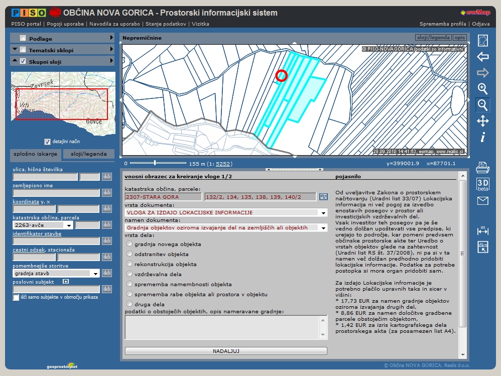 - izdelava vlog za različne dokumente na osnovi izbranih parcel