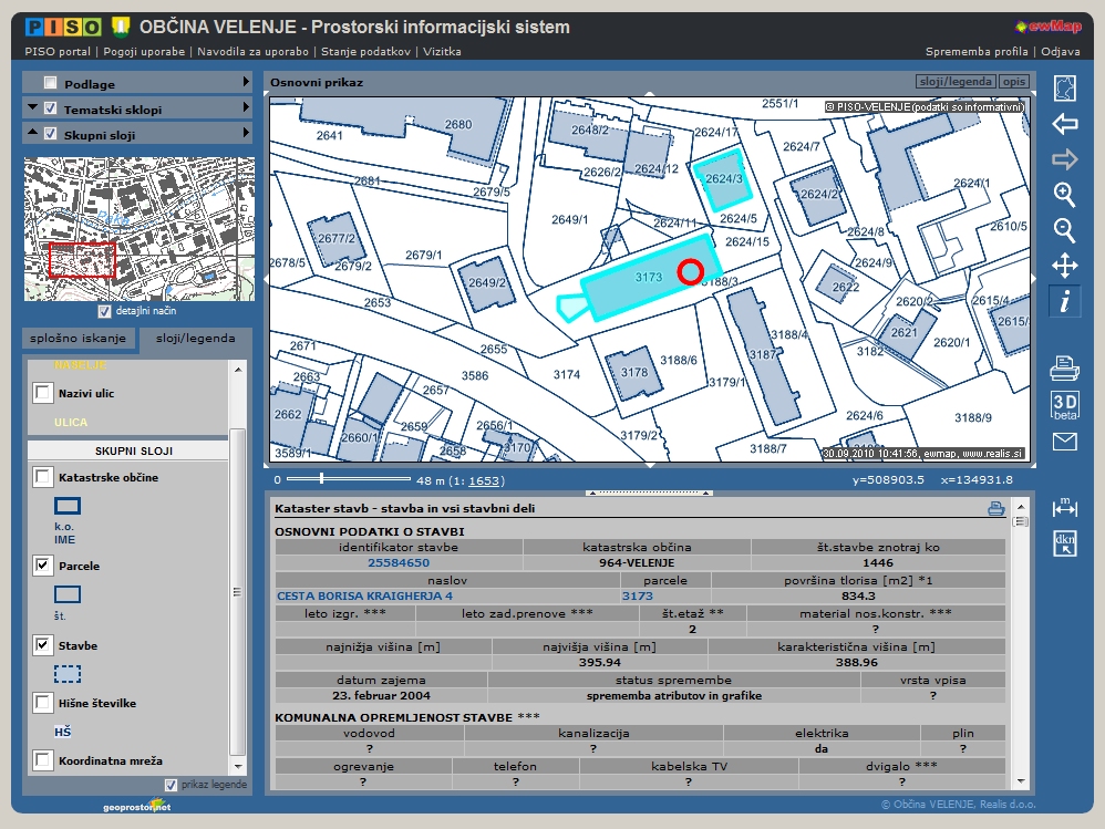 - prikaz obrisov stavb